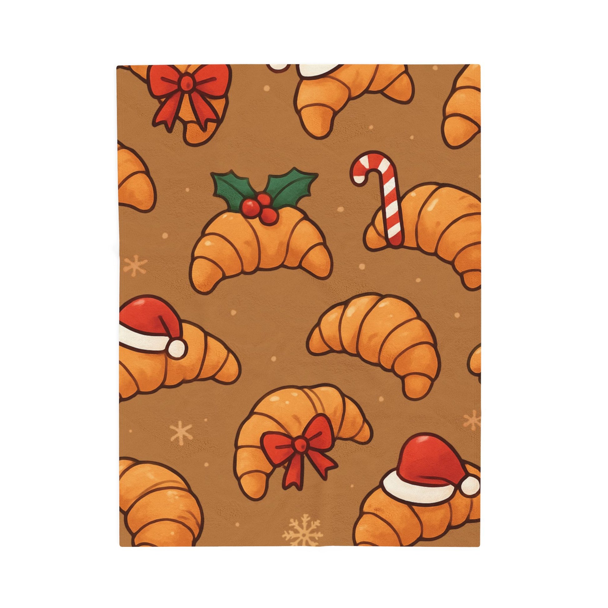 Christmas Croissant Velveteen Plush Blanket – Cozy Holiday Pastry Print