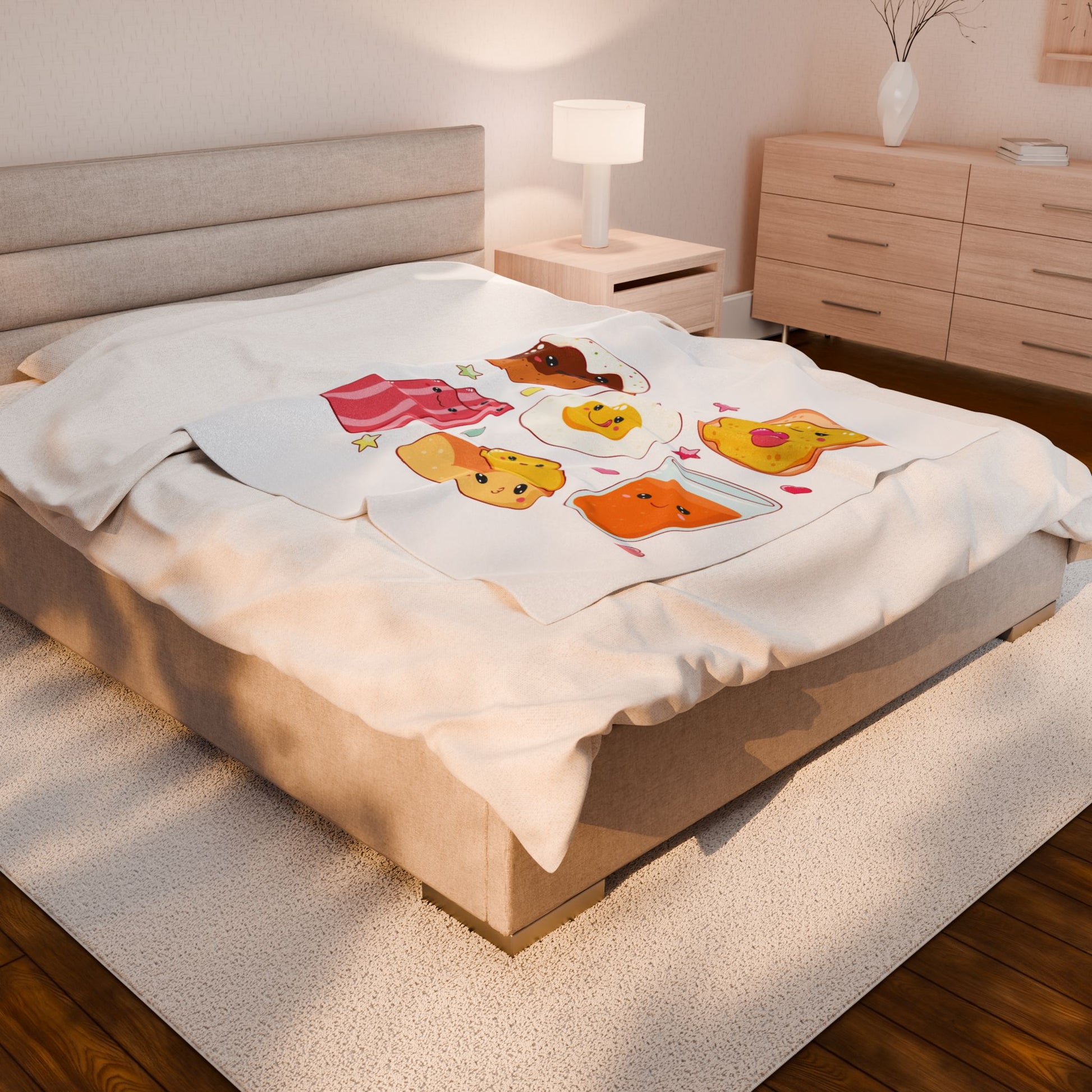 Wrap yourself in comfort and joy with this delightful Velveteen Plush Blanket. Designed for adults, its vibrant and adorable food-themed prints bring a playful touch to any space, perfect for cozy nights in or cheerful decor in your living room. This blanket is not only a source of warmth but also a statement piece, setting a charming atmosphere during family gatherings, movie nights, or casual hangs with friends. Ideal for gifting during holidays like Christmas, housewarming events, or special celebrations, this plush blanket is sure to brighten anyone's day with its whimsical charm.