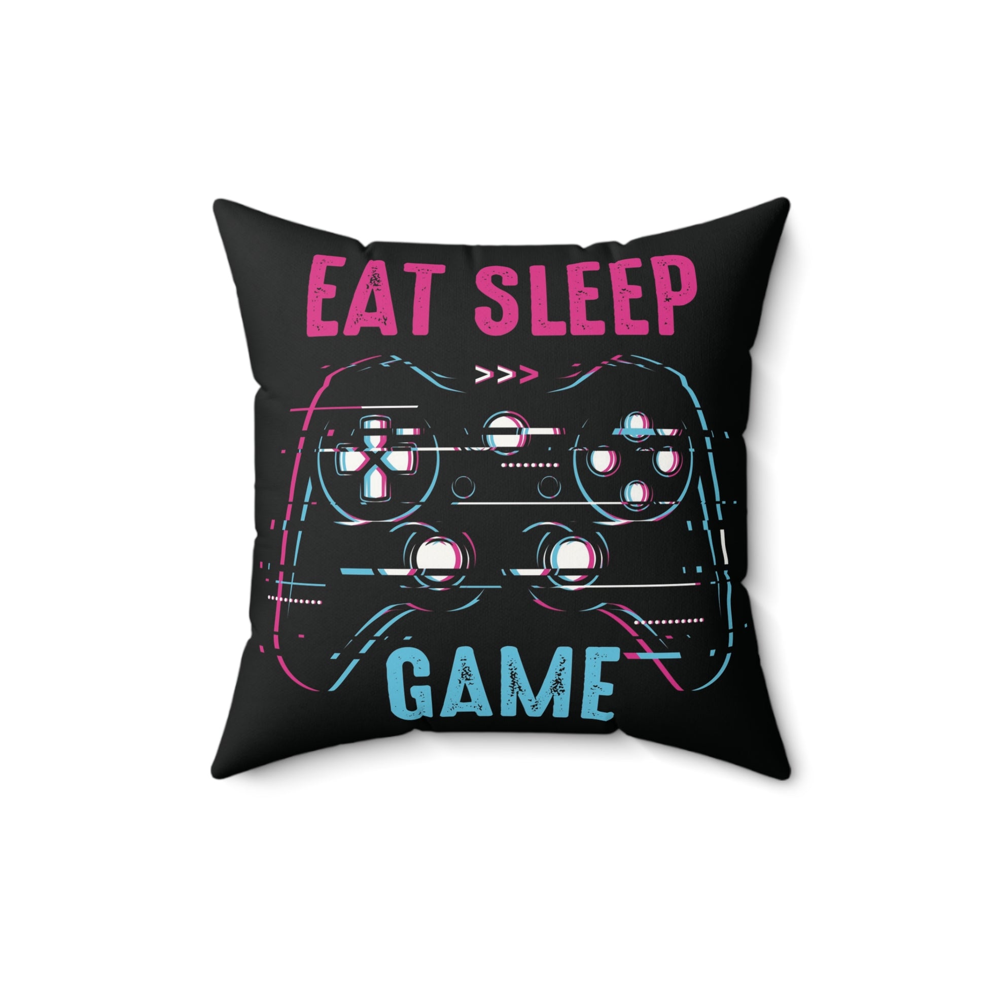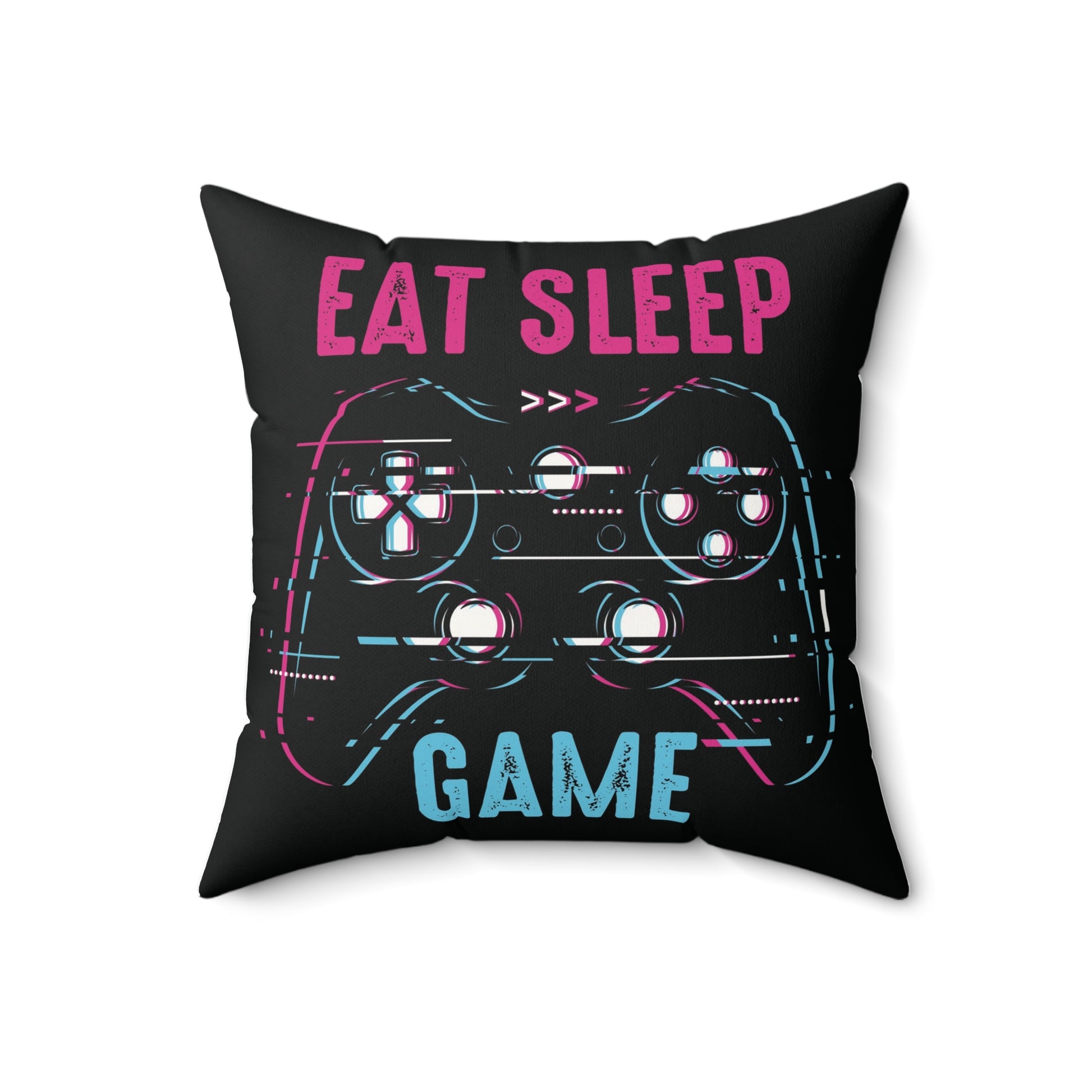 Elevate your gaming space with this stylish square pillow, perfect for any gamer looking to add a bit of personality to their environment. Featuring a vibrant double-sided print of the classic phrase 'Eat Sleep Game,' this pillow gives off a fun, relaxed vibe that invites creativity and comfort. It’s not just a decorative piece; it’s designed to be functional and durable, making it a great addition to your gaming chair, couch, or bed. Ideal for gamers of all ages, this pillow makes an excellent gift for birthdays, holidays, or any celebration that welcomes personal expression. Whether you're sprucing up your room or looking for the perfect present for the gamer in your life, this pillow is sure to impress. It's a must-have accessory for all gaming enthusiasts!