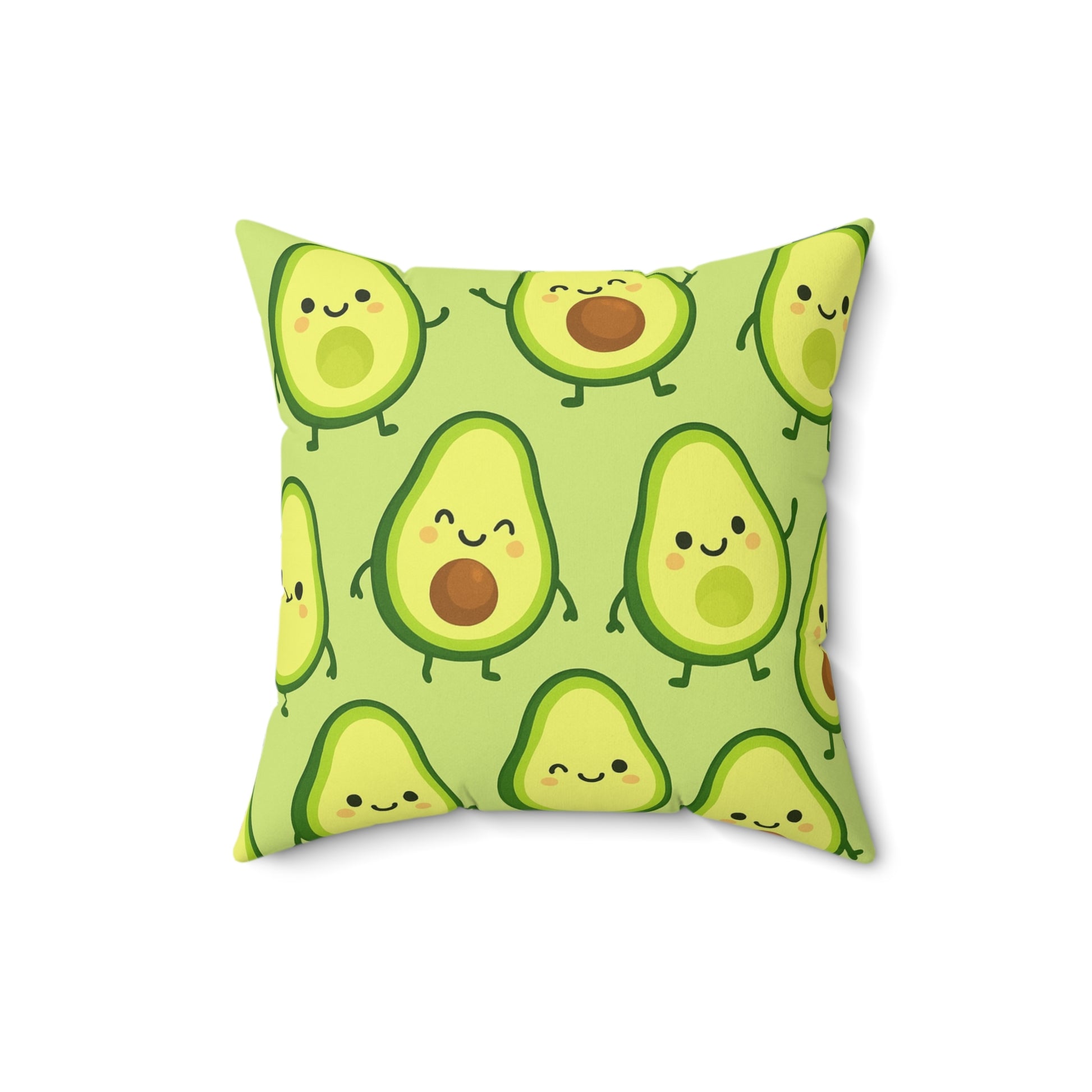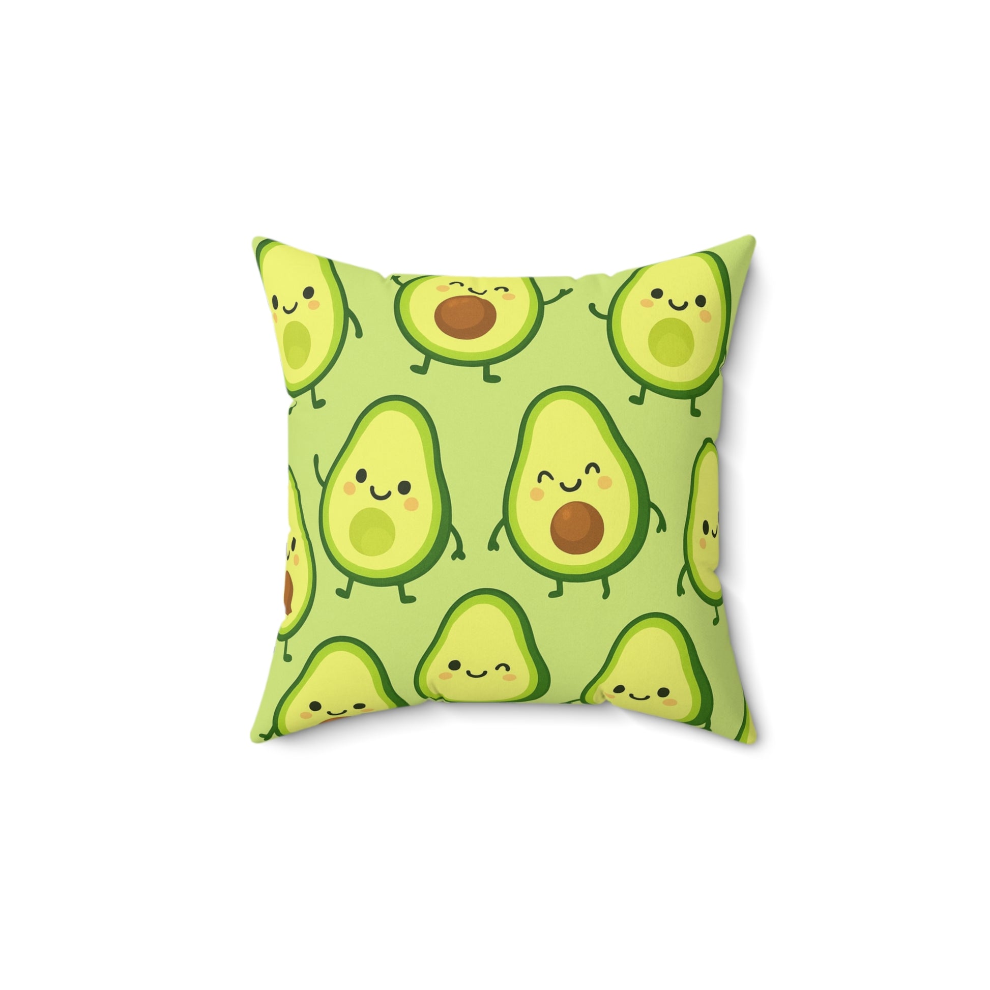 Bring a playful pop of joy to any couch, bed, or reading nook with this double-sided avocado pillow. Soft spun polyester keeps the colors bright and the surface smooth, while the recycled polyester insert arrives slightly oversized so the pillow looks full and bouncy once assembled. The cheerful avocado faces and fresh green palette add a lighthearted, cozy vibe — great for kitchens, dorm rooms, or anyone who collects cute food-themed decor. The concealed beige zipper blends into the design for a clean finish and easy care; the cover ships flat to avoid creases and slips on once you inflate the insert for instant personality.