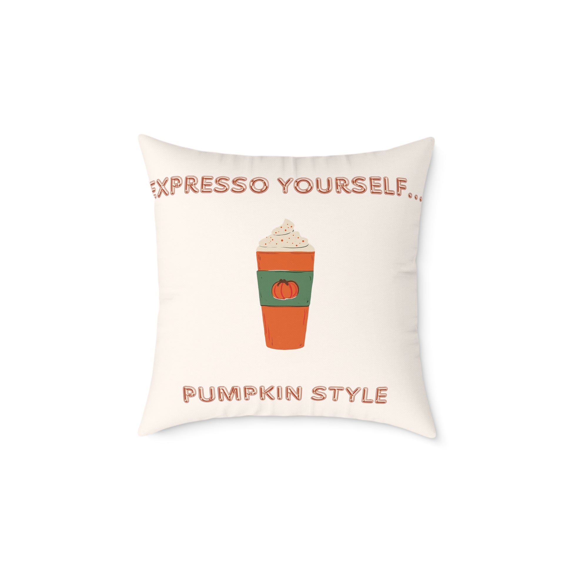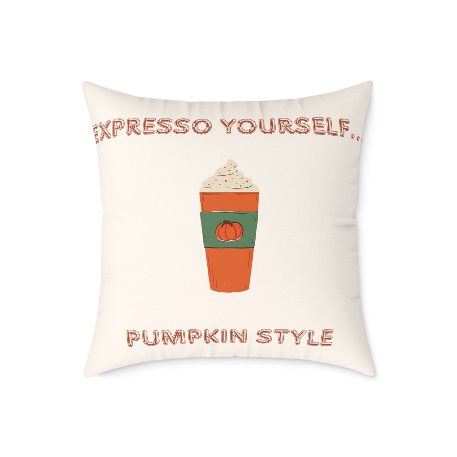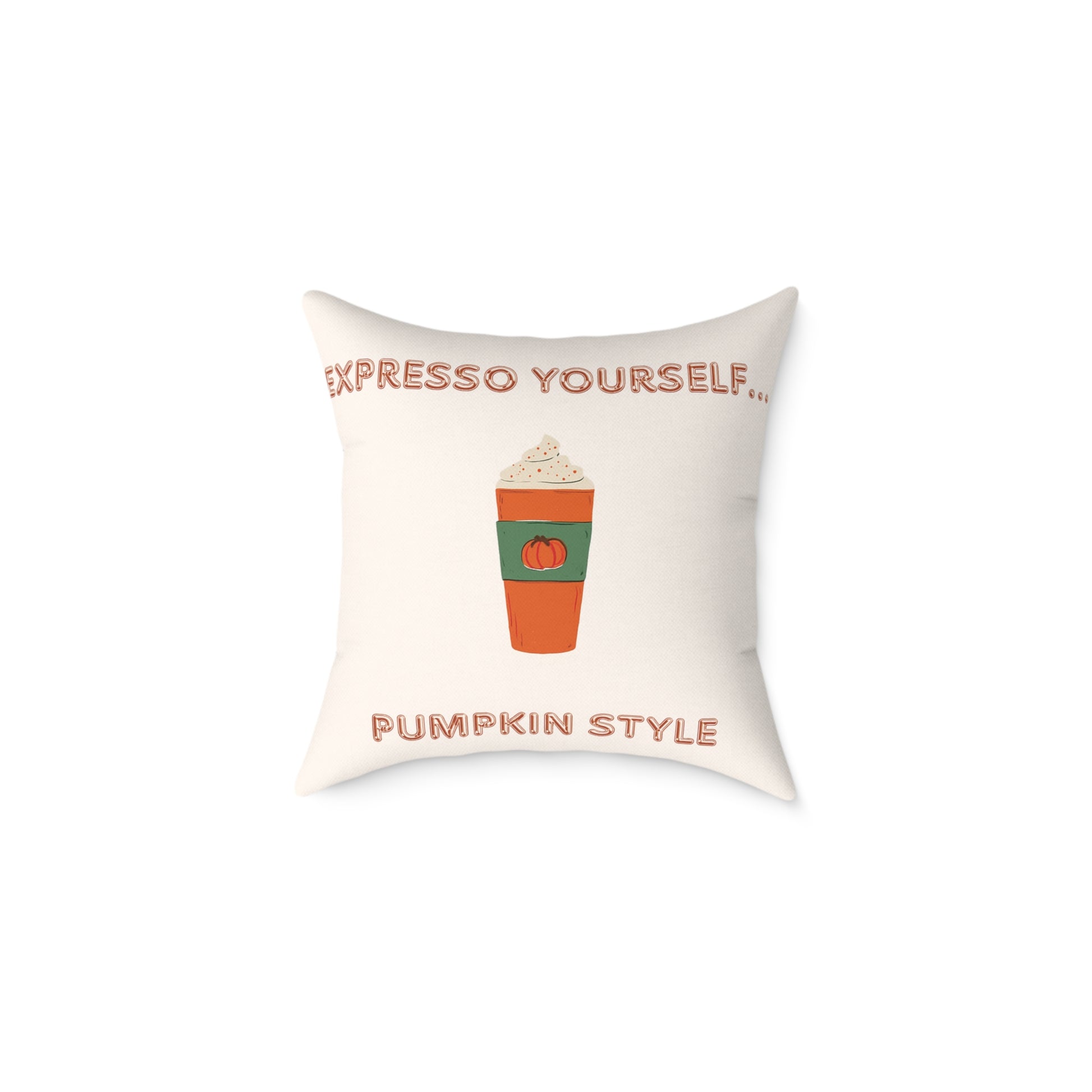Elevate your living space with this charming Square Poly Canvas Pillow, perfect for cozying up during chilly evenings or adding a playful touch to your decor. The vibrant, double-sided print features a fun ‘Expresso Yourself, Pumpkin Style’ design that captures the essence of autumn, making it ideal for coffee lovers or anyone who enjoys the cozy vibes of the fall season. This pillow fits effortlessly into any room—whether on your sofa, bed, or in a favorite reading nook—instantly enhancing your home with color and personality. An exquisite addition for Thanksgiving gatherings or seasonal celebrations, it's an excellent gift for friends and family who appreciate unique home accessories.